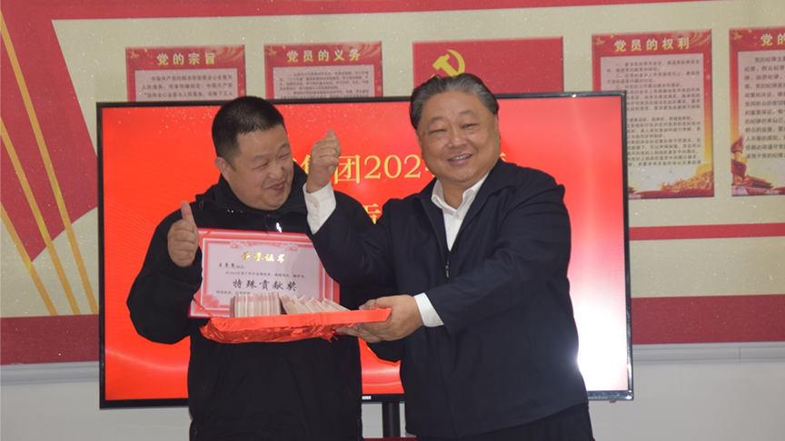 集團董事長吳晉龍為總工程師王亮亮頒發(fā)特別貢獻獎